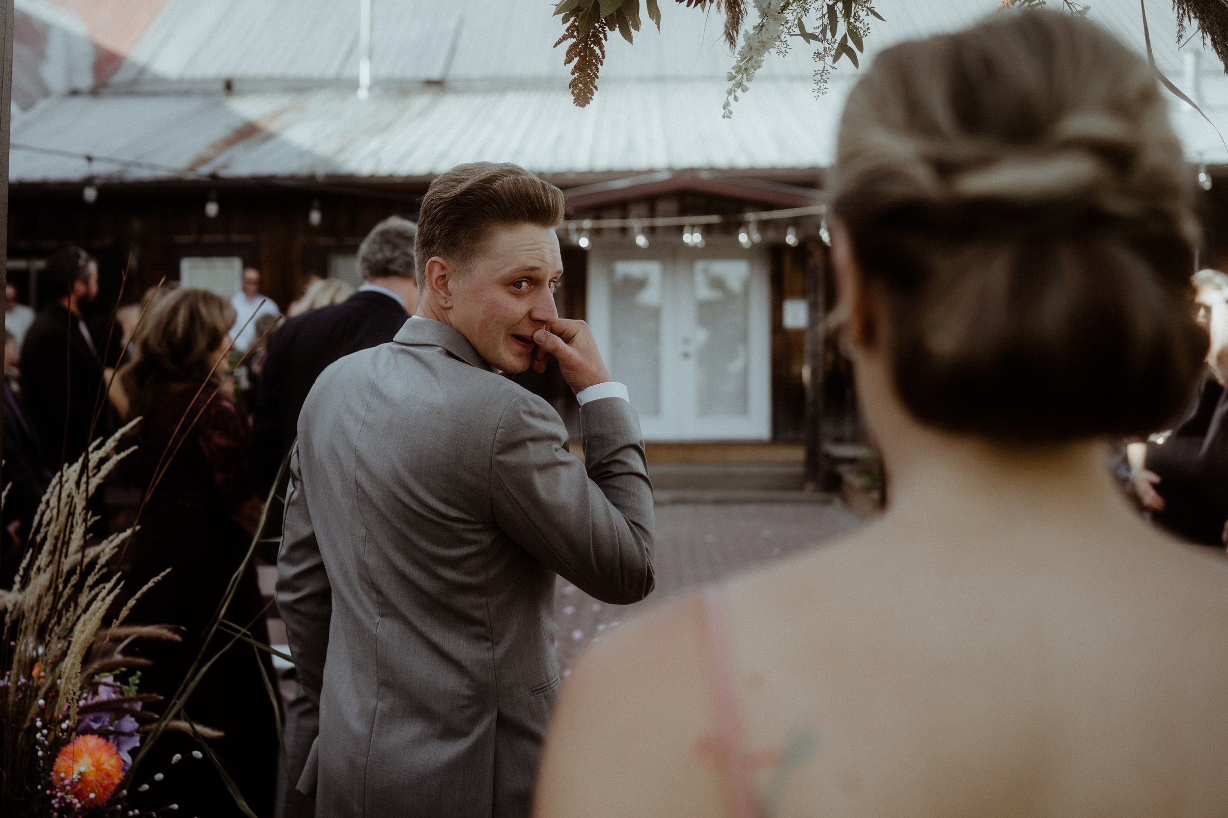 We could probably do a photo-essay of all the emotional scenes from Kaylea and Dakota’s wedding: all the laughter and tears throughout the day just made us smile and aww-ed as we were editing these. This one below though is our favourite: Dakota looking back at his sister, who was officiating the wedding, as he waits for Kaylea to walk down the aisle, our hearts all melting collective.